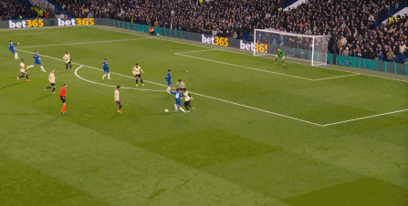 所以在攻守形势并未逆转的情况下,下半场的切尔西依旧占据着优势,可利用的空间随着人数优势显现: